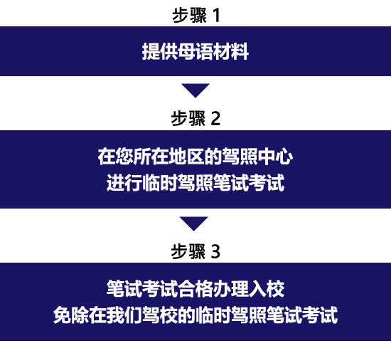 入校之前在您所在地区的驾照中心先考「临时驾照笔试考试」合格了,您在我们驾校的临时驾照笔试考试就可以免除,由此您能够顺利的按照日程进行路上的课程。