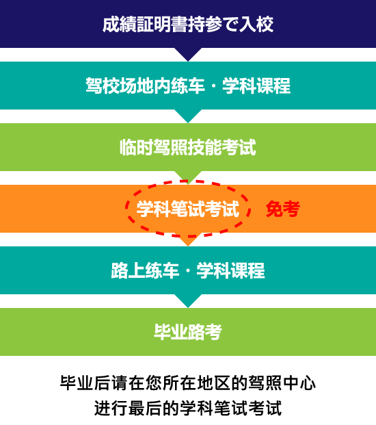 请您携带着「成绩合格证明书」办理通常合宿的入校手续。最难的临时驾照笔试考试免考后,并能顺利的按照日程进行路上练车课程。