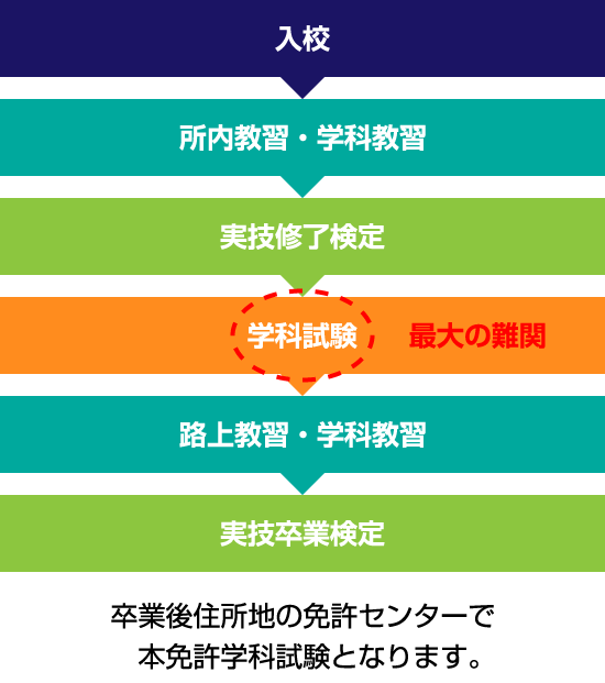 教習所へご入校前に「仮免許学科試験」を合格し、修了検定での学科試験を免除にすることでスムーズに路上教習に進むことができます。