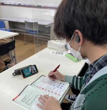 スマートフォンやタブレット、パソコン等を使い、教習所や滞在施設など場所を選ばず学科教習が受講可能です。